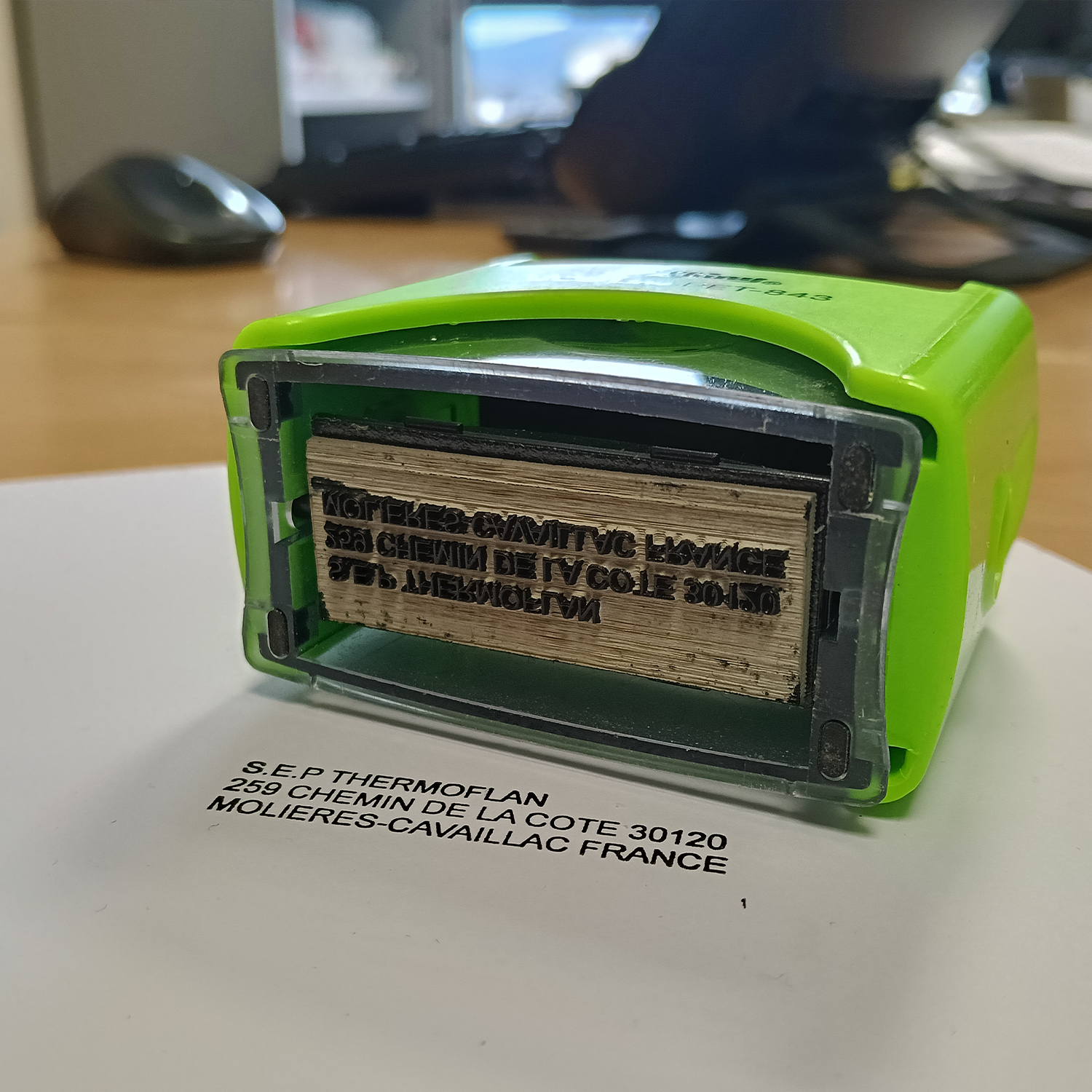 Cette technique est particulièrement utilisée pour la fabrication de tampons, grâce à sa capacité à reproduire finement les détails même sur de petites surfaces.