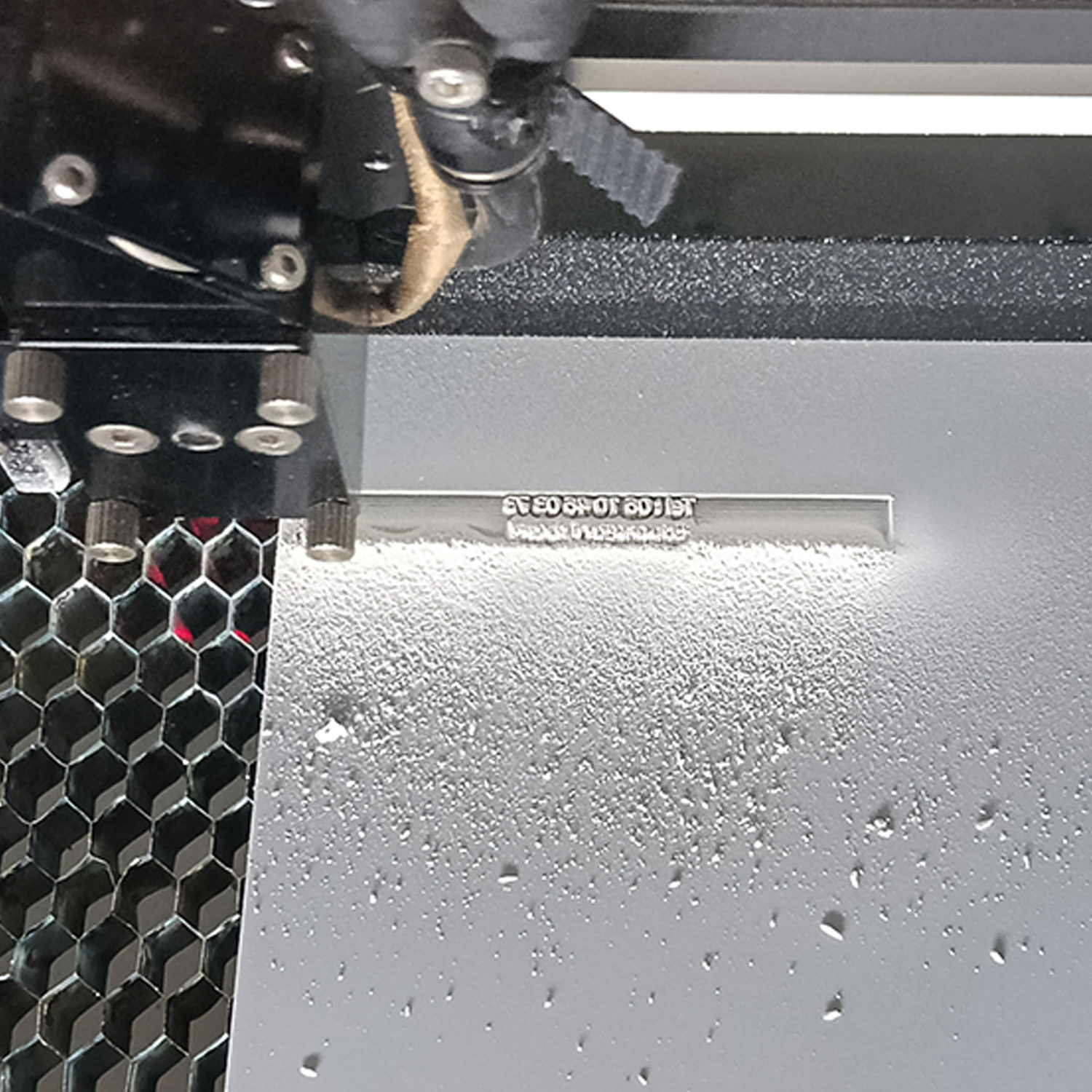 La gravure laser CO₂ sur caoutchouc permet de créer des motifs, textes ou logos avec une grande précision et une excellente lisibilité.